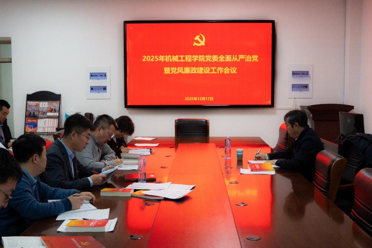 为坚定不移推进全面从严治党向纵深发展,12月17日下午,机械工程学院党委召开2025年全面从严治党暨党风廉政建设工作会议。会议由学院党委书记黄成钢主持。学院领导班子成员、支部书记、各系部主任、办公室行政人员参加了会议。校党委副书记、校长韩永全出席会议并作点评讲话。