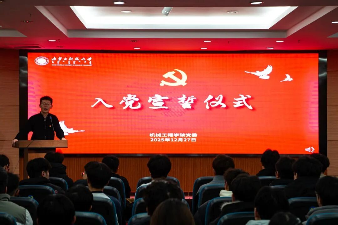 为进一步强化党员意识,筑牢信仰之基,凝聚奋进力量,2025年12月27日,机械工程学院在校图书馆举行入党宣誓仪式。学院专职辅导员包智文、刘鹏,各支部支委及全体党员同志齐聚一堂,共同见证新党员光荣加入中国共产党的重要时刻,分享这份属于全体党员的政治喜悦。
