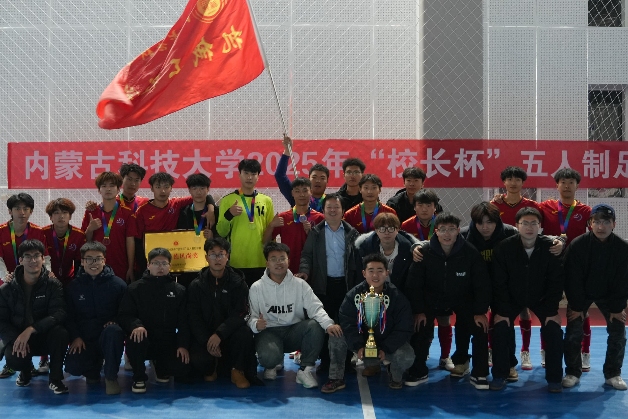 2025年11月18日晚,内蒙古科技大学2025年“校长杯”五人制足球赛决赛在校体育馆举行。机械工程学院足球队凭借出色的团队配合与顽强拼搏精神,成功问鼎冠军!