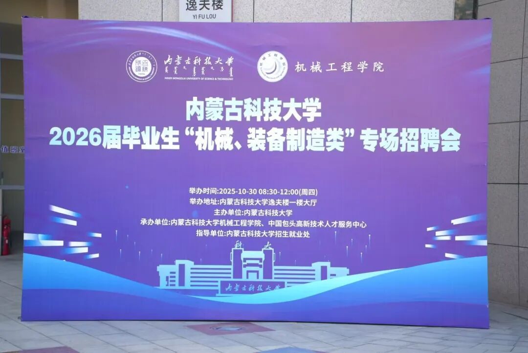 2025年10月30日,内蒙古科技大学2026届毕业生“机械、装备制造类”专场招聘会在我校逸夫楼一楼大厅圆满举办。招聘会聚焦“机械、装备制造类”专业就业市场供需,为企业与毕业生搭建起高效的双向选择平台。