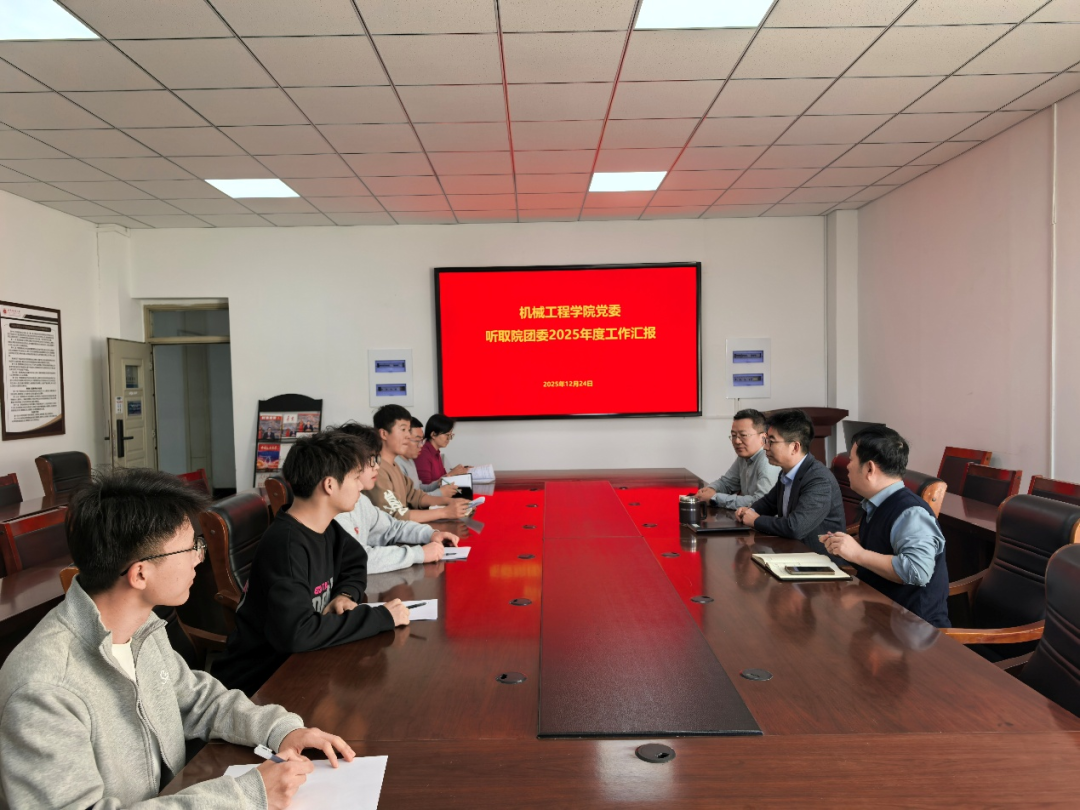 为充分发挥党建带团建工作的优势,全面掌握学院学团组织工作动态。机械工程学院党委于12月24日在腾飞楼C211听取2025年度学院共青团、学生会、学生社团工作汇报。参加本次会议的有机械工程学院党委书记黄成钢、院长王少锋、党委副书记兼副院长罗宁、党委组织委员马鑫、党委宣传委员李倩甜,以及学团办老师和学院学生会主席、学院团委副书记。