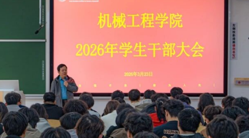 为进一步夯实学生干部队伍建设根基,强化学生干部责任意识与担当精神,充分发挥学生干部在校园治理、学风建设、校园活动中的桥梁纽带作用与先锋模范作用,2026年3月23日中午,机械工程学院在逸夫楼G104教室召开学生干部大会。会议由学院党委副书记兼副院长罗宁主持,学院辅导员及全体学生干部参加了会议。