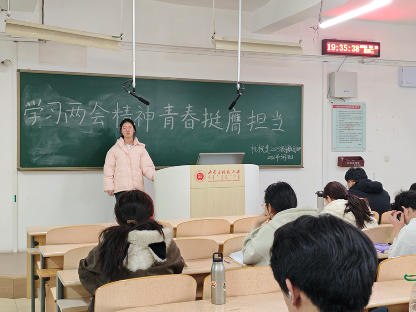 随后,团支书组织开展“两会精神我来学”心得分享会。团员们结合自身感悟,积极分享学习心得,大家在交流中共同进步,进一步增强了作为机械学子投身强国建设、践行青春担当的使命感与责任感。