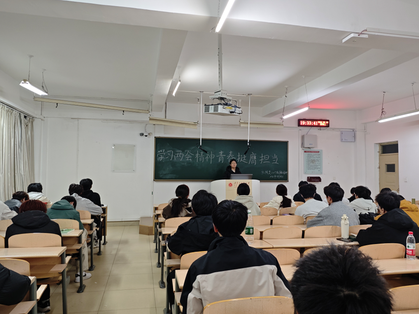 活动开始,团支书通过PPT讲解,围绕两会精神与青年使命,结合同学们关心的就业、技能提升等话题,让青年们在轻松互动中读懂政策、找准方向,真切体会到时代发展与青年成长同频共振。