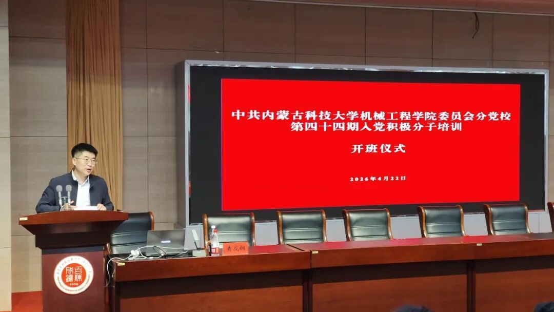 为深入学习贯彻习近平新时代中国特色社会主义思想,进一步加强对我院入党积极分子的教育培训,提高入党积极分子的政治素质和理论修养,2026年4月22日中午,机械工程学院党委在图书馆b201报告厅举行机械工程学院第44期入党积极分子培训班开班仪式。院党委书记黄成钢、辅导员包智文以及本期培训班全体学员参加会议。
