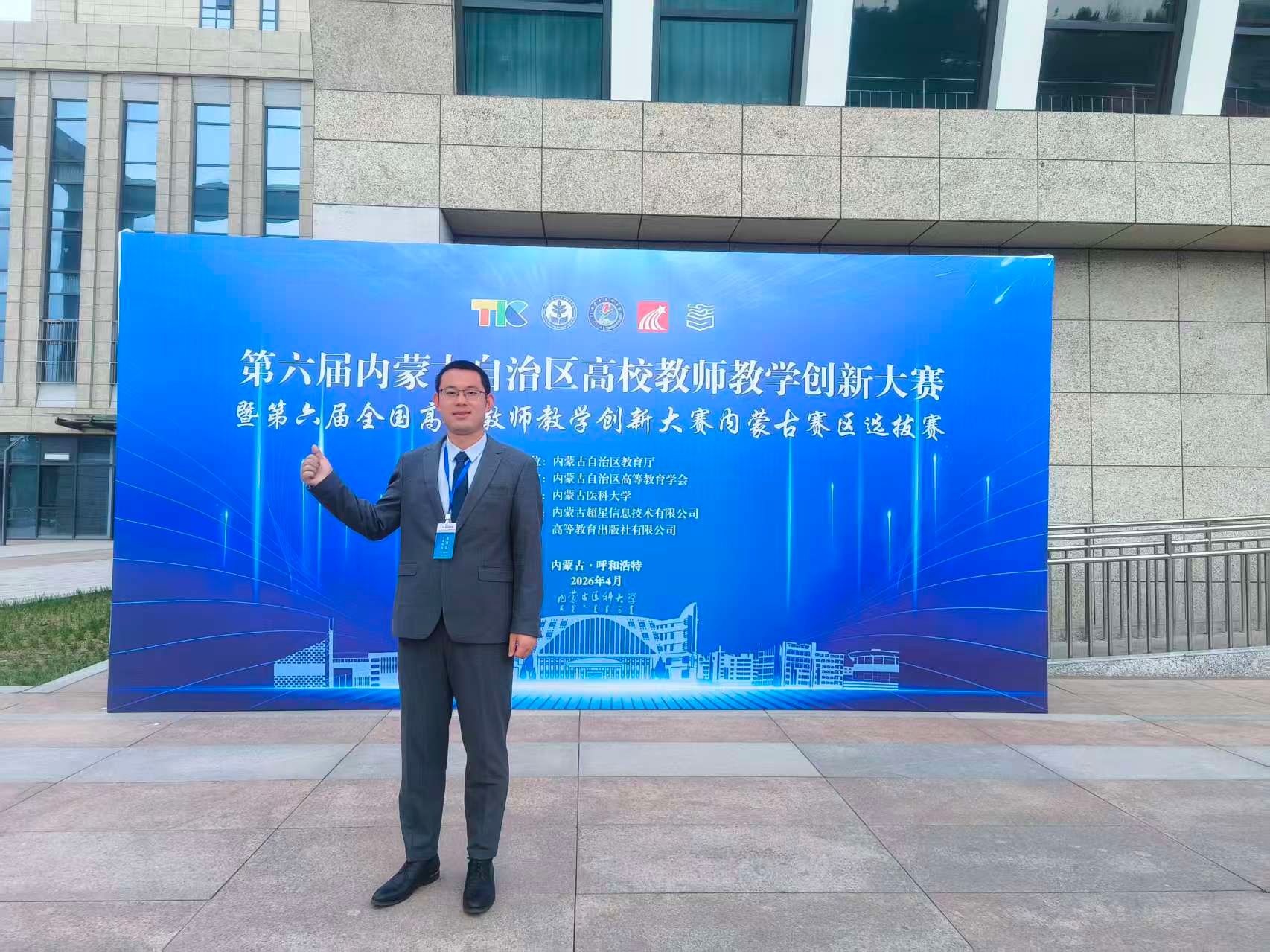 2026年4月25日至4月26日,第六届内蒙古自治区高校教师教学创新大赛暨第六届全国高校教师教学创新大赛内蒙古赛区选拔赛在内蒙古医科大学顺利举行。我院教师孙国鑫凭借出色的教学设计与创新的课程实践,在众多参赛选手中脱颖而出,荣获大赛副高级组一等奖的优异成绩。